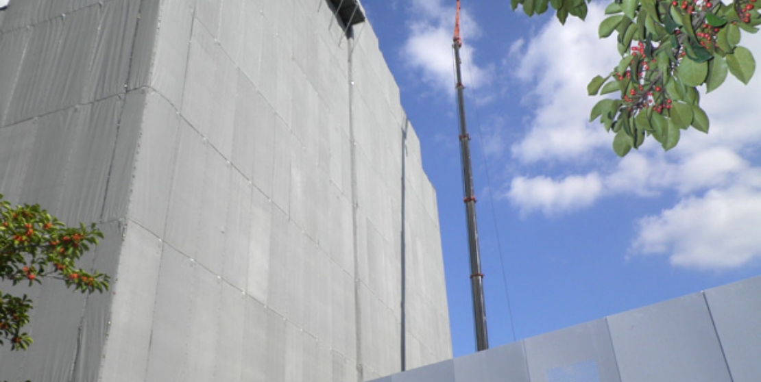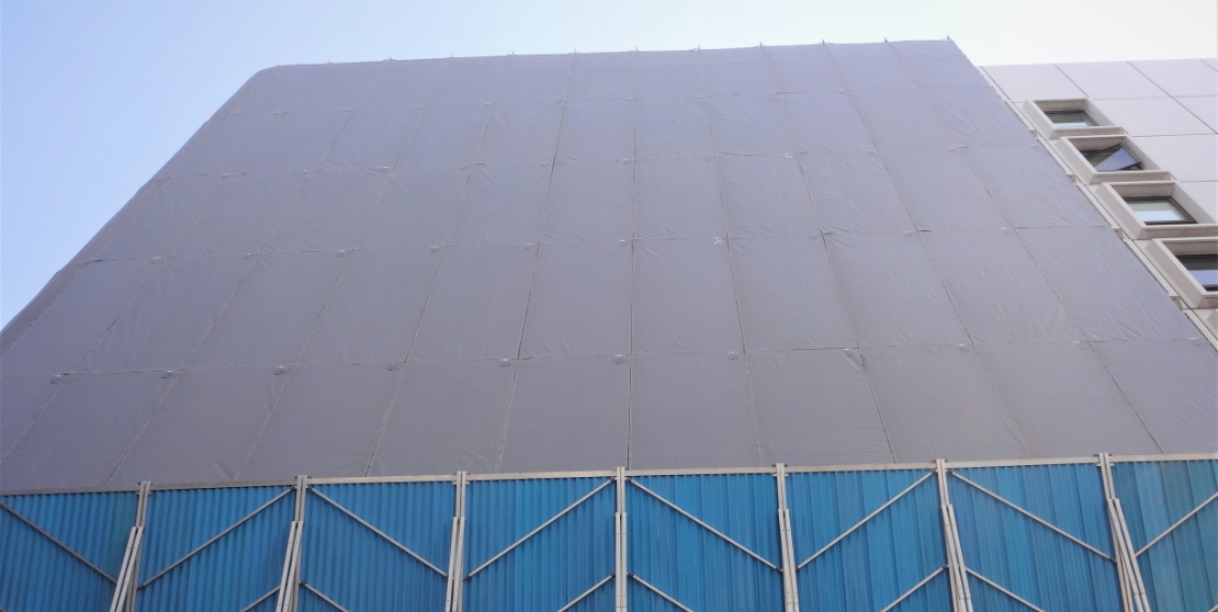 資材の搬出入等による必要のため、メッシュシートの一部を取り外した場合は、その必要がなくなったときは原状に復しているかどうかを点検してください。