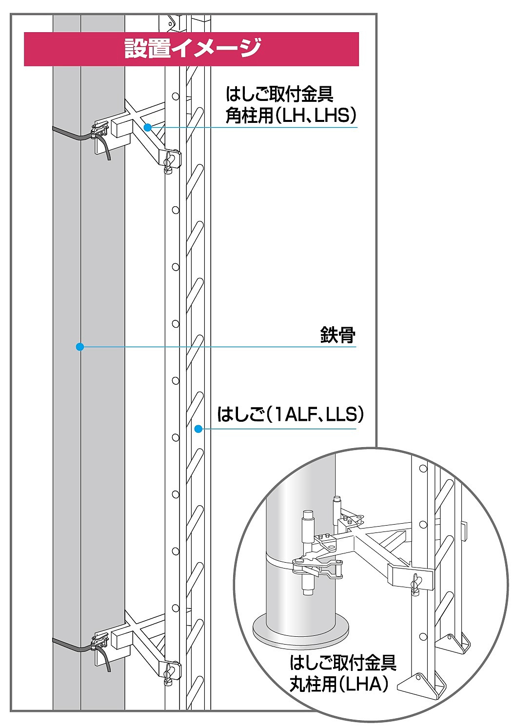 ・本製品は一連はしごLLSの固定用に使用してください。