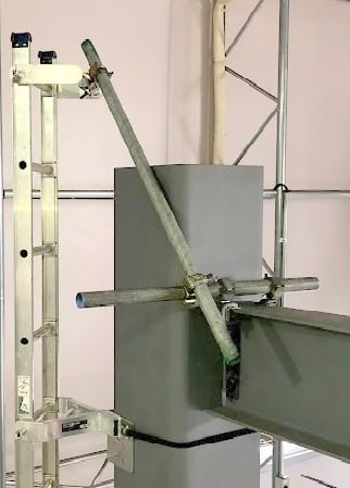 ・本製品使用時には、はしごにねじれが生じないように単管1本又は2本で補強してください。