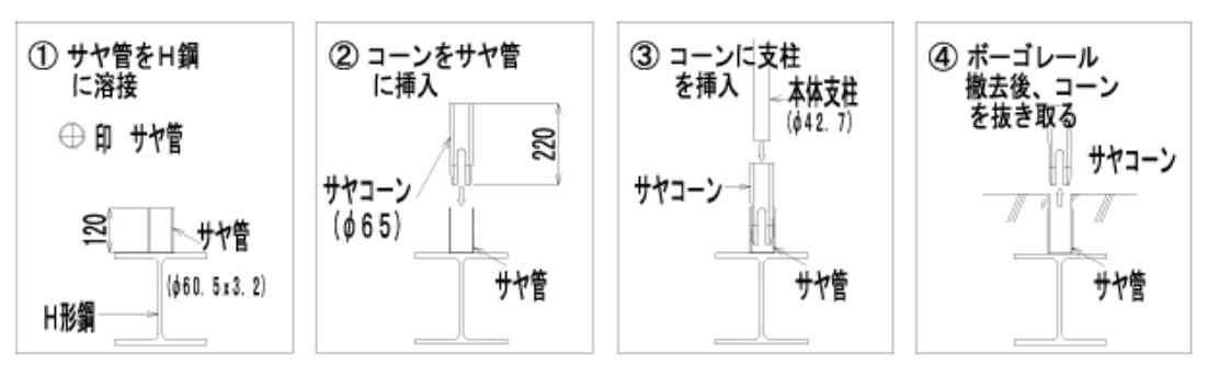 - 樹脂性コーンを差し込むことによりサヤ管とガタを完全に解消。コンクリートを打った後もスムーズに抜けます。