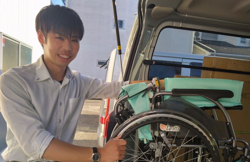 主に私たちのお客様である貸与事業所を訪問し、近況や困りごとをヒアリングして福祉用具などのご提案します。利用者さんの体調などから貸与事業所が必要な福祉用具を選定し、その情報をもとに私たちが商品を用意するというのが、業務の基本的な流れです。新商品がでたときには、情報の提供を兼ねた提案を行います。当社は幅広い商品の取扱があるため、貸与事業所からのオーダーに対して、より良い商品の提案をすることも可能です。こうした日々のやり取りを通して、貸与事業所との信頼関係を築いていくのも、私たちの大切な役割の一つだと感じています。